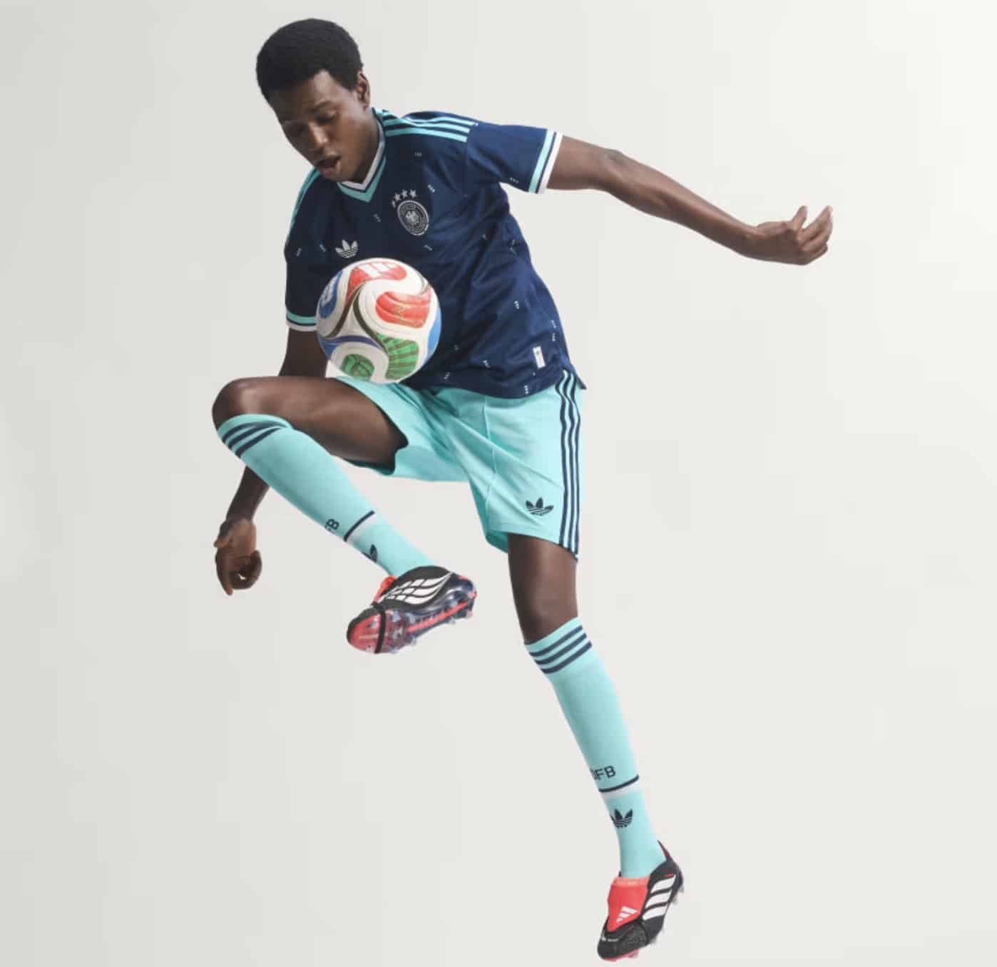 Die „Germany 2026 World Cup Retro Collection“ von Adidas ist geleakt und zeigt eine Retro-Kollektion mit klarem DFB-Bezug. Footy Headlines veröffentlichte die vollständigen Teile, die das Trefoil-Logo neben dem traditionellen DFB-Wappen tragen. Farblich dominiert eine maritime Kombination aus Navy und Hellmint, die an das Away-Trikot für die WM 2026 anknüpft. Erste Artikel sind bereits im Adidas-Onlineshop für Ecuador aufgetaucht; die Veröffentlichung ist für März 2026 angekündigt.